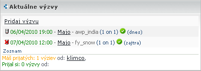 V paneli výziev je štatistika troch najlepších hráčov spolu so získanými bodmi. Svoje body si môžete skontrolovať vo svojom profile alebo v user paneli.