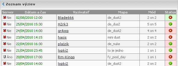 Pri otvorení prijatej výzvy sa zobrazia informácie o užívateľoch a informácie vypĺňané na začiatku. Užívatelia sa môžu dohodnúť v komentároch na ostatných podrobnostiach k odohratiu. Komentáre môže pridávať každý registrovaný člen portálu. Celý systém je zabezpečený ošetrujúcimi podmienkami. Výzvu môže pridávať len registrovaný člen, tak isto môže svoju vytvorenú a nepotvrdenú výzvu zmazať. Zakladateľ nemôže prijať vlastnú výzvu. Po uplynutí časového intervalu systém informuje o vypršaní limitu a nedovoľuje prijatie. Všetky zadané výzvy sa dajú zobrazovať v prehľadnom zozname, ktorý obsahuje základné informácie.