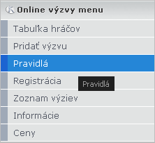 Všetky potrebné odkazy nájdete v Online výzvy menu, ktoré sa nachádza v pravo na user profiom. Prvý odkaz pozostáva z Tabuľka hráčov, kde nájdete registrovaných hráčov so statusom zaplatenia/nezaplatenia štartovného. Druhý odkaz Pridať výzvu slúži na pridanie samotnej výzvy na zápas. Dôležitým odkazom sú Pravidlá, ktoré musí ovládať každý registrovaný hráč v Online výzvach o hodnotné ceny. Neznalosť pravidiel neospravedlňuje! Ďalším odkazom je Registrácia, ktorú treba vyplniť pravdivo. Do sytému bude otvorená registrácia nepretržito až do dátumu ukončenia hracieho termínu výziev. Všetky odohrané/neodohrané/naplánované výzvy nájdete v piatom odkaze Zoznam výziev. V predposlednom odkaze Informácie nájdete info ohľadom Online výzvach o hodnotné ceny. A ako posledný, pre každého istotne najzaujímavejší odkaz, je odkaz Ceny, kde budú uvedené výhry pre každé hracie obdobie výziev.Samotné pridanie výzvy je velmi jednoduché. Pozostáva z výberu možností a zadania dát. Ako prvé hráč vyplní IP servera na ktorom bude samotný zápas prebiehať. Ak server nemá nechá políčko prázdne a systém graficky ukáze bez servera. Druhým krokom je výber mapy. Mapy sú obmedzené a to na fy, awp, aim, pistols mapy. Zoznam sa časom môže meniť.