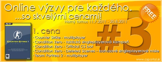 Pokračovanie Online výzvach bude tak isto voľne prístupné pre všetkých členov portálu ako tomu bolo v predchádzajúcom hernom turnuse. Herné obdobie boja o prvú cenu si hráči rozdajú od 11.07.2011 do 20.08.2011. V tomto hernom turnuse sme sa rozhodli odmeniť iba toho, ktorý bude v ranku hráčov TOP 1. Najlepší hráč z najlepších hráčov na csportal portáli získava cenu: