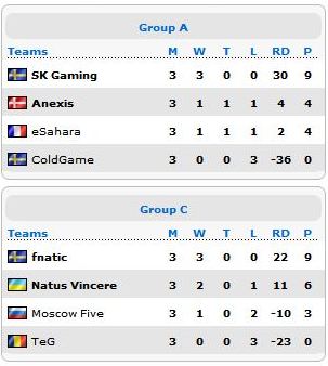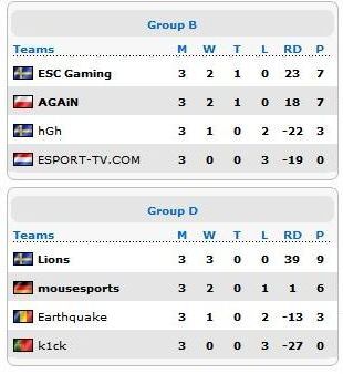 Výsledky umiestnení v skupinách :