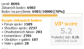 vip score smallAko sa hovorí, bez práce niesú koláče. Toto porekadlo je istotne každému dobre známe. Za prácu na webe môžeme považovať, u členov ale aj administrátorov, plnenie obsahu webu. Za túto aktivitu ste mali a ešte máte level status ale v podstate nič viac. Prinášame vám za vašu aktivitu konečne aj tie koláče.