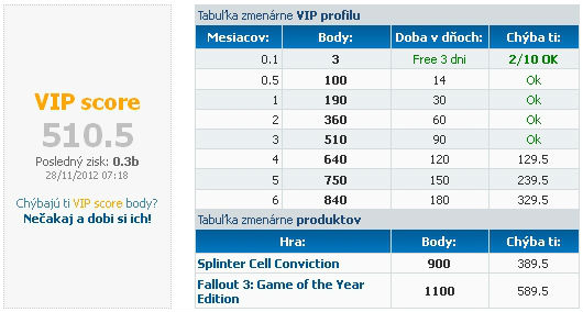 VIP profil môžete získať aj úplne zadarmo zapojením sa do rôznych súťaží. Preto je dobré sledovať náš web, aby vám žiadna novinka neunikla. Ďalšou možnosťou je zbieranie VIP score bodov, ktoré si môžete zameniť online za VIP profil na rôzne časové obdobia. Viac informácii o zbieraní VIP score bodov sa dočítate v novinke VIP score na www.csportal.sk.