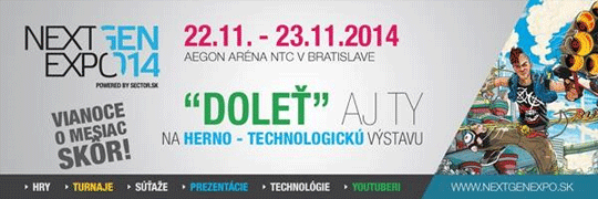 Lístky sú už v predaji v sieti Ticketportal za zvýhodnenú cenu až do 18. novembra. Chcete vedieť viac? Zamierte na oficiálnu stránku NextGen Expo 2014, staňte sa našimi fanúšikmi na Facebooku a samozrejme nezabudnite čítať Sector. Tešíme sa na vás!