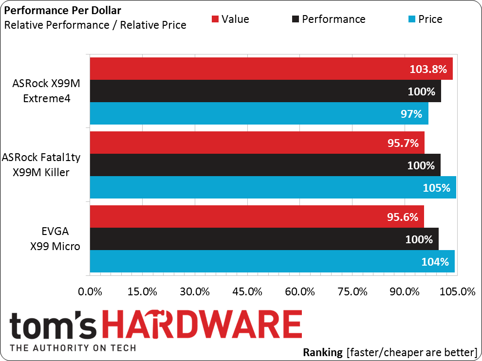 Tento graf jasne ukazuje ako ASRock X99M Extreme4 vedie v cene aj v hodnote.