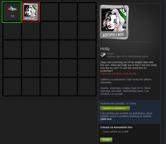 Túto kartu môžete buď predať, alebo ju vymeniť za určitý počet diamantov. Viď zelené políčko v obrázku vyššie.