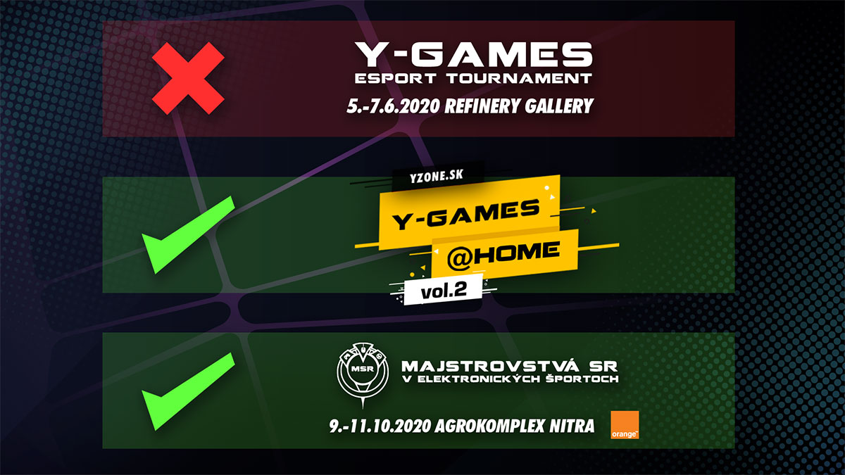 Tento rok sa nebude konať klasický offlinový herný festival Y-Games, ktorý sa mal uskutočniť začiatkom júna 2020 v bratislavskej refinery gallery. Ďalšou veľkou správou, ale už pozitívnou je, že oficiálne Majstrovstvá Slovenska v elektronických športov sa stávajú pridruženým podujatím nitrianskeho Autosalónu, vďaka čomu návštevníci dostanú 3 podujatia za cenu jednej vstupenky ( MSR, Y-CON, Autosalón ).