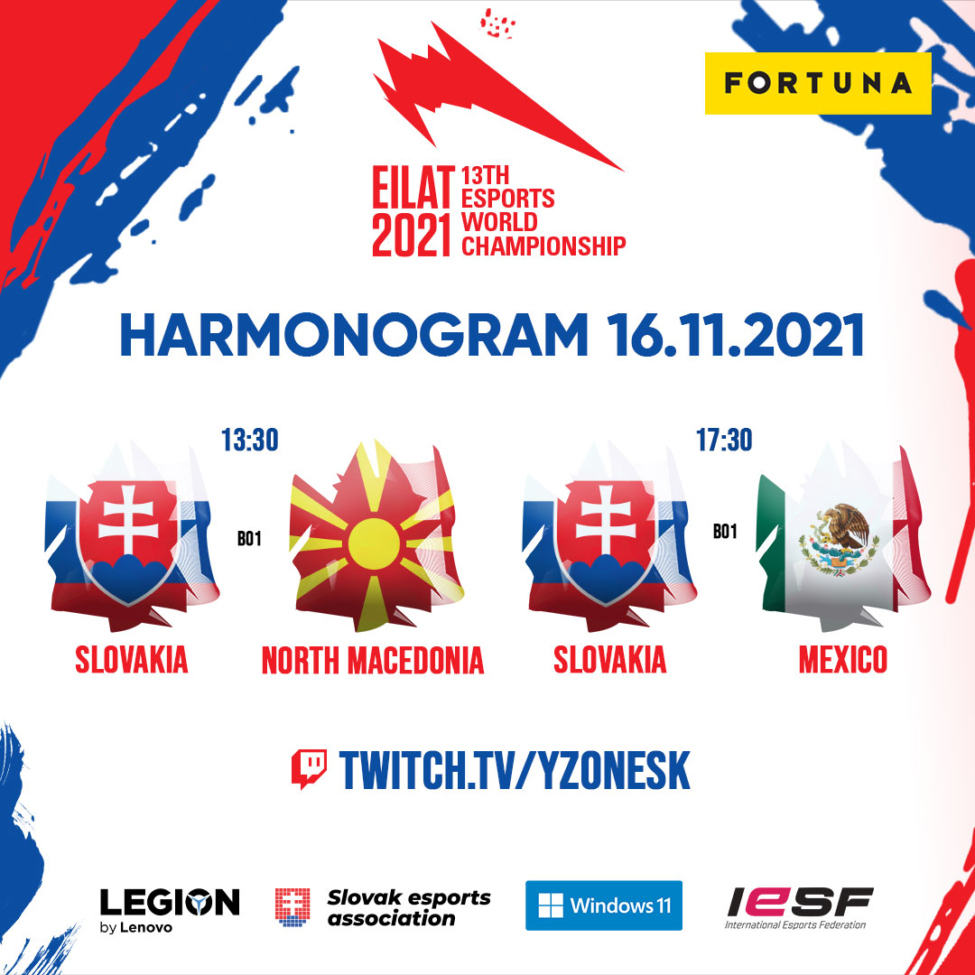 CS:GO zápasy našej reprezentácie v slovenskom jazyku môžete od 16.11. do 19.11.2021 sledovať live na: twitch.tv/yzonesk. Celý priebeh majstrovstiev sveta vo všetkých hrách v anglickom jazyku môžete sledovať na oficiálnom twitchi organizátora IESF.