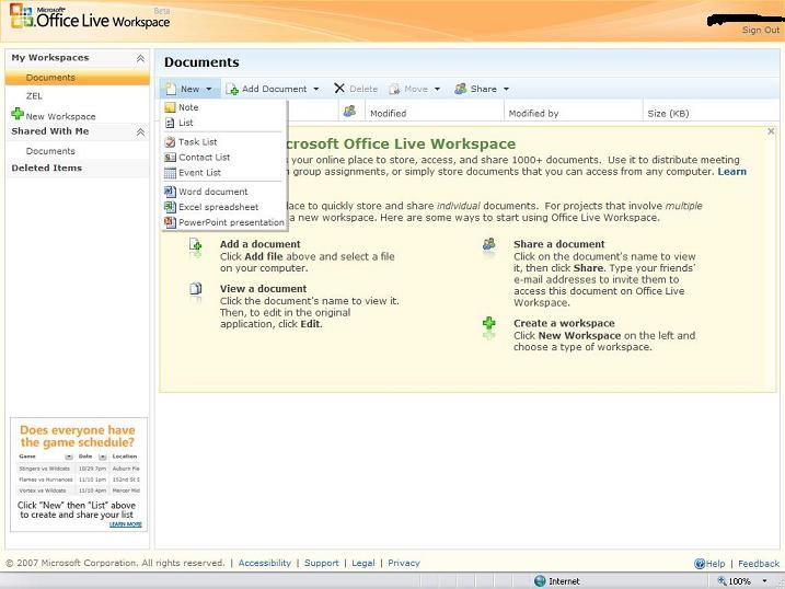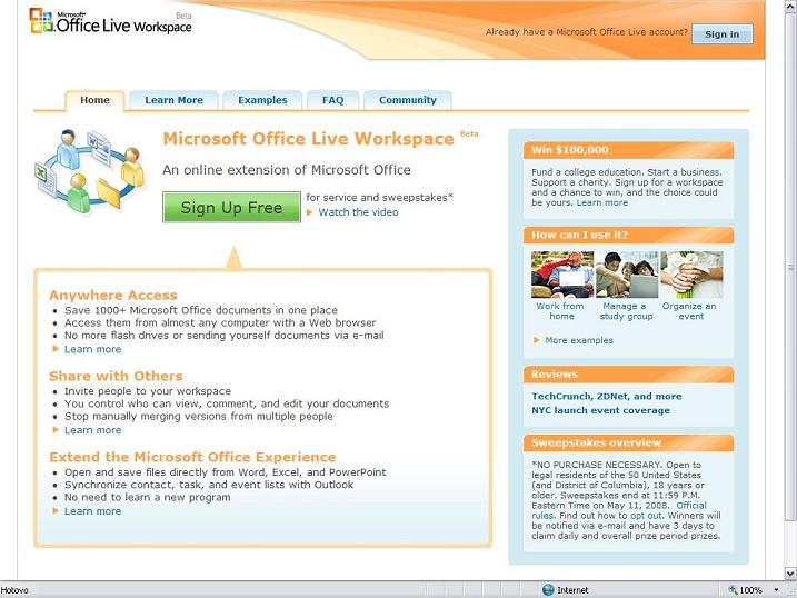 - Klikneme na „Save to Office Live“ a následné na „Sing in to Office Live Workspace Beta“