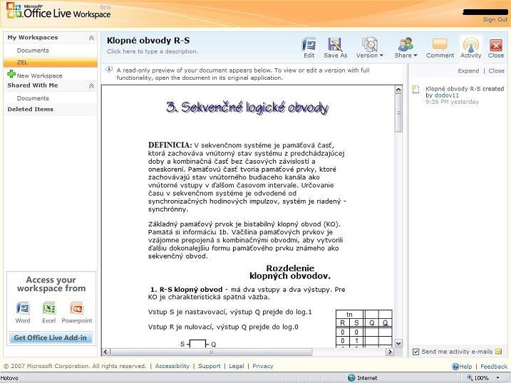 - Prihlásime a môžeme ukladať. Tak isto sa aj otvára len klikneme na „Open from Office Live“