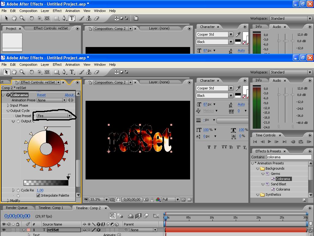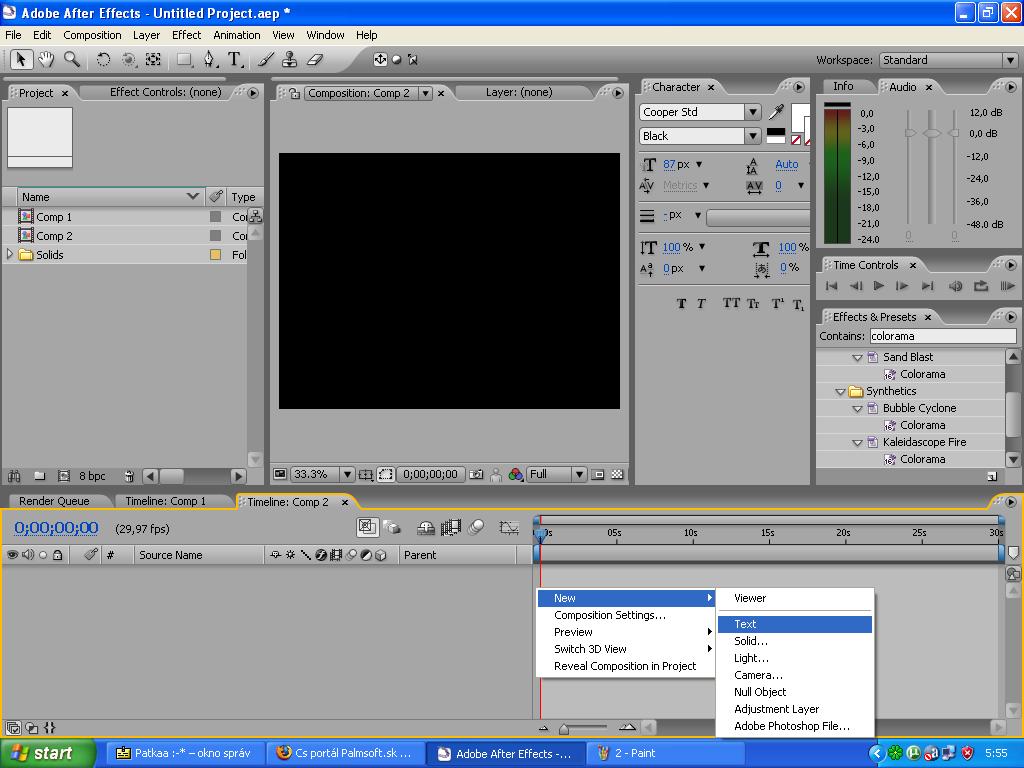 Dúfam že už ste sa naučili ako pridať efekty.. ak nie tak si nakonci pozrite kompletné video. Dobre príáme teda na daný text efekt:COSMIC POWER (cesta: Animation presents->Backgrounds->COSMIC POWER)