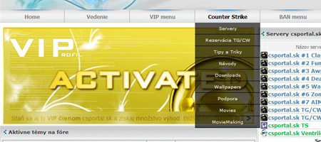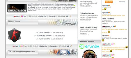 Druhá podstatná vec, ktorá sa zmenila na webe je rozmiestnenie panelov. Teraz si môžete novinky čítaťv ľavom najširšom panely, čo sa nezmenilo je tretí úplne pravý panel, v ktorom vidíte to čo aj pred tým avšak s tým, že hneď vedľa neho mu asistuje súbor panelov obsahujúci posledné odohraté zápasy csportalom, posledných prihlásených užívateľov ako aj partnerov a mediálnu podporu. V pravom hornom rohu nájdete rozpis našich serverov a hneď pod ním sa Vám náhodne menia trailery rôznych hier.