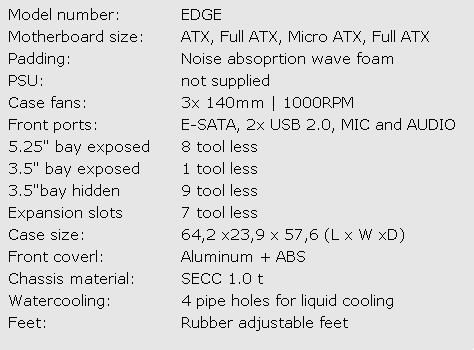 Nexus sa už tradične venuje špeciálne eliminácií hluku - u EDGE použil odhlučňovaciu hmotu na bočnice, odvibrovacie podložky pre zdroj umiestnený na spodku skrinky a tiež tri 14cm ventilátory - vpredu, vzadu a na vrchu. Tieto ventilátory majú maximálnu hodnotu otáčok na 1000rpm a pri tom pretlačia 46 CFM pri 18dB(A).