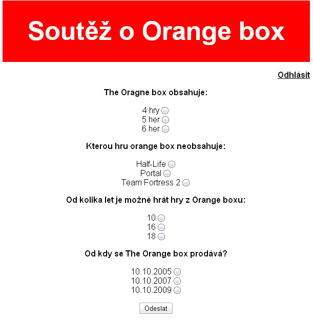 Po vyplnení Login: calado a Password: ****** vám stránka ponúkne otázky a odpovede z ktorých máte vybrať tie správne.