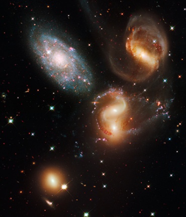 Na tomto zábere je zhluk piatich blízko seba umiestnených galaxií. Ide však o zrakový klam. Namodralá špirálovitá galaxia v ľavom hornom rohu má označenie NGC 7319 a je sedemkrát bližšie k Zemi ako ostatné galaxie. Zvyšné štyri galaxie však na seba gravitačne pôsobia, a odborníci predpokladajú, že časom sa k sebe priblížia natoľko, že vytvoria jednu obrovskú galaxiu.