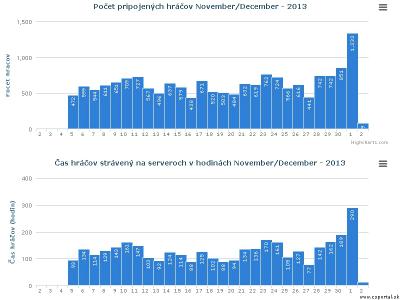 | Graf zobrazujúci počet hráčov pripojených na CS:GO serveroch portálu. Ide o unikatny počet steam hráčov a ich čas strávený na serveroch. Krásny skok na 1333 hráčov a 290 hodín hrania. | |